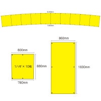 [セット内容] 8m門型エアーアーチ本体×1体、バックシート×4枚、ロープ×8本 [サイズ]アーチ本体:W:11000×D:1500×H:約5500mm アーチ内径:W:8000×H:約4000mm 横バックシート(1ハギ×10枚 ):上底:800mm、下底:780mm 高さ:880mm 縦バックシート(1ハギ ):W:860×H:1830mm [材質]アーチ本体:ターポリン バックシート:軟質塩ビ